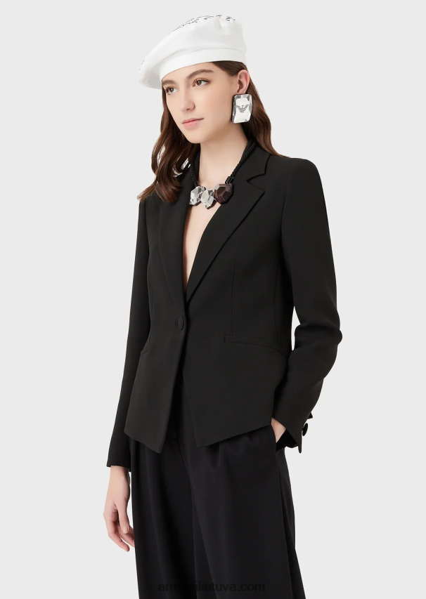 moterys juodas Armani cady krepinė striukė su atlapais 02482X41