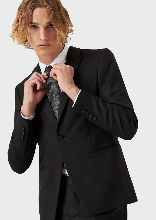 Į pradinį puslapį| vyrų| apranga| švarkai ir švarkai| vyrų juodas Armani vieneilis šukuotinis švarkas iš vilnos 02482X1046
