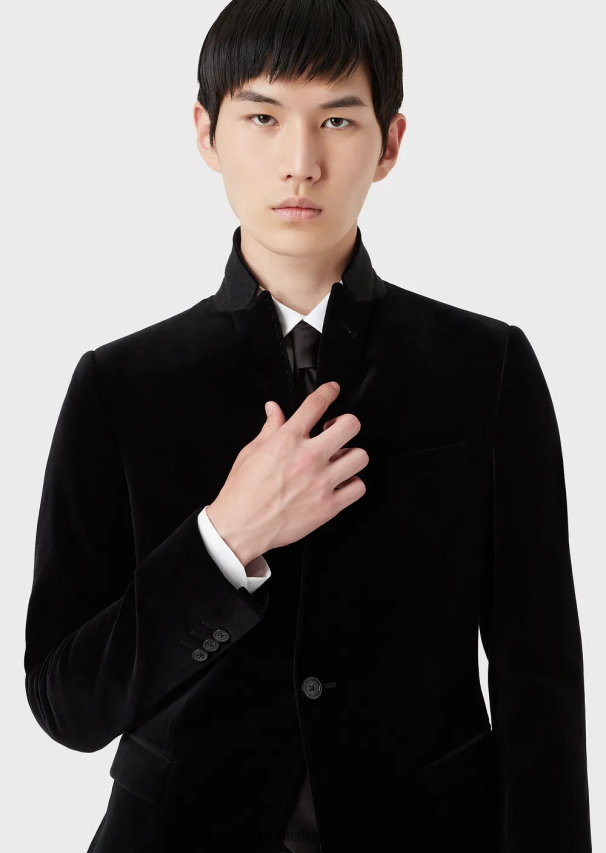 Į pradinį puslapį| vyrų| apranga| švarkai ir švarkai| vyrų juodas Armani vieneilis švarkas iš aksomo 02482X1048