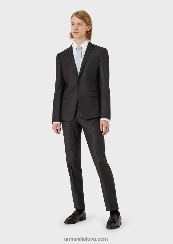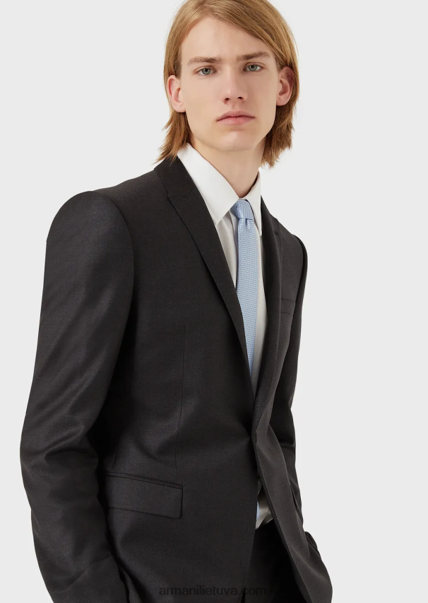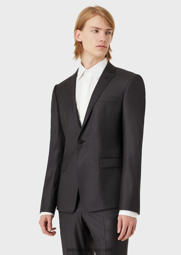 vyrų pilka Armani vieneilis grynos vilnos švarkas 02482X1050