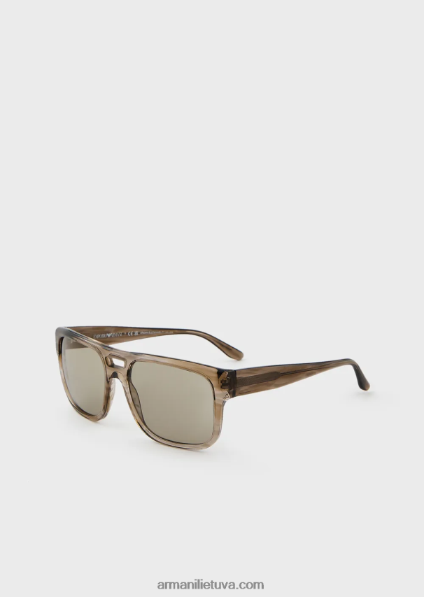 Vyriški akiniai nuo saulės su geometriniu siluetu ir ekologiška bioacetato konstrukcija, derančiu dizainu ir tvarumu. dvigubo tilto konstrukcija su skaidriomis detalėmis ir atspausdintu emporio armani logotipu.