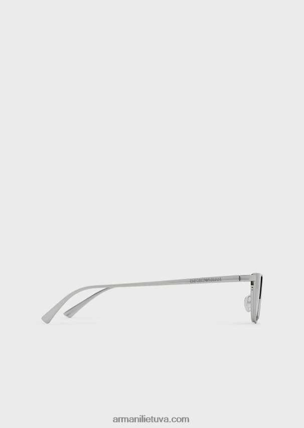 Futuristinio dizaino vyriški akiniai nuo saulės su metaline konstrukcija. plonos, linijinės šventyklos puoštos emporio armani logotipo graviravimu.