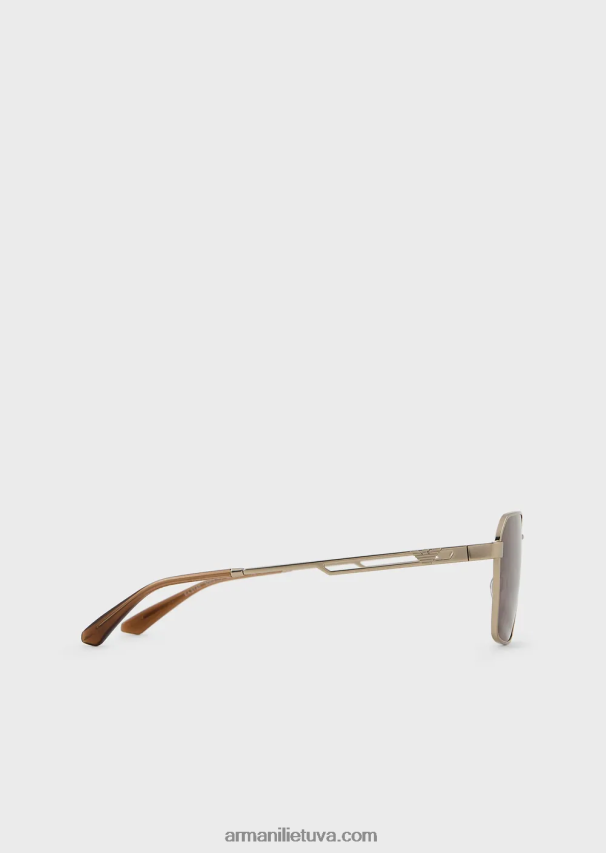geometrinio dizaino vyriški akiniai nuo saulės ant metalinės konstrukcijos. Konstrukcija su metalinėmis nosies pagalvėlėmis, kad būtų patogiau, plokščios kojos su dekoratyvine anga ir įspaustas erelio logotipas.