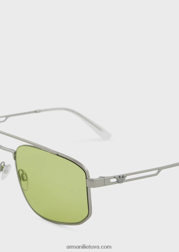 geometrinio dizaino vyriški akiniai nuo saulės ant metalinės konstrukcijos. su dvigubu tilteliu ir metalinėmis nosies pagalvėlėmis, užtikrinančiomis didesnį komfortą. plokščios šventyklos su dekoratyvine anga ir įspaustu erelio logotipu.