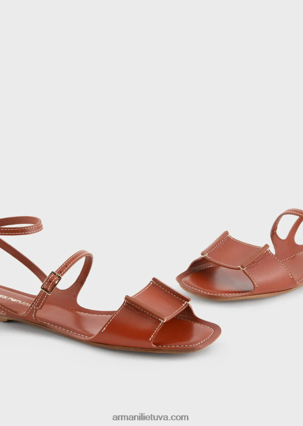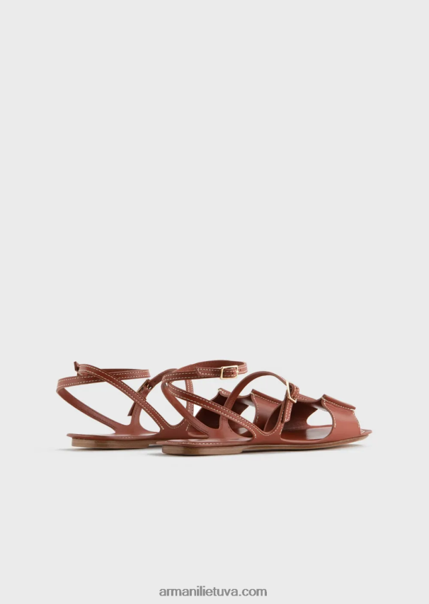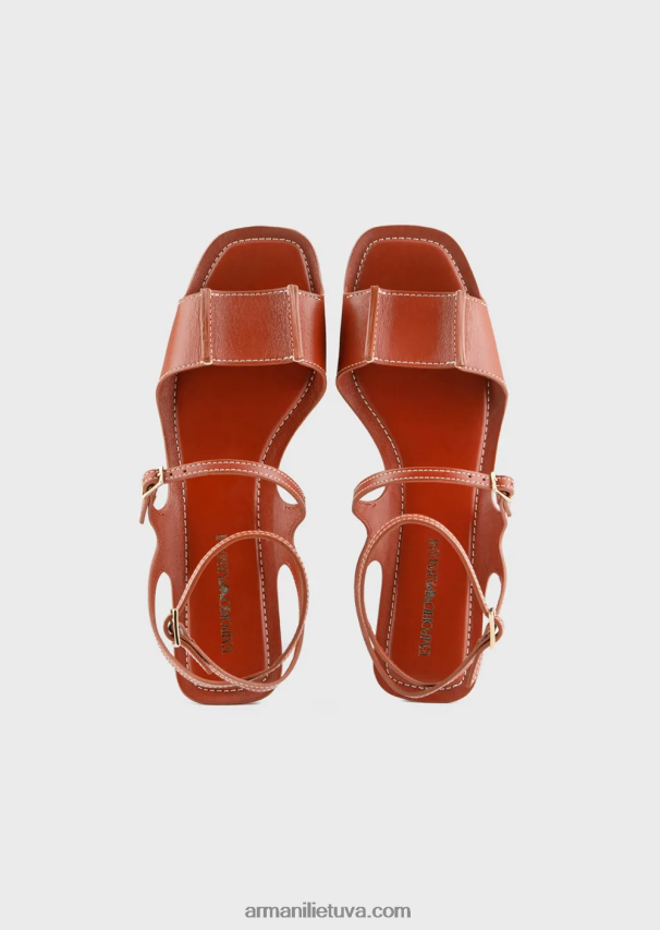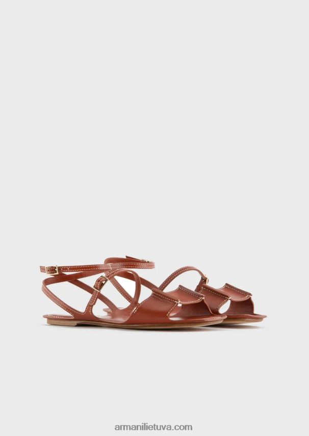 moterys rudas Armani odiniai dvigubi dirželiai sandalai 02482X530