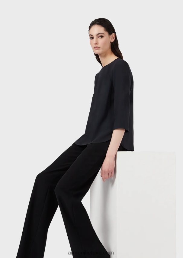 moterys juodas Armani techno cady palazzo kelnės 02482X305