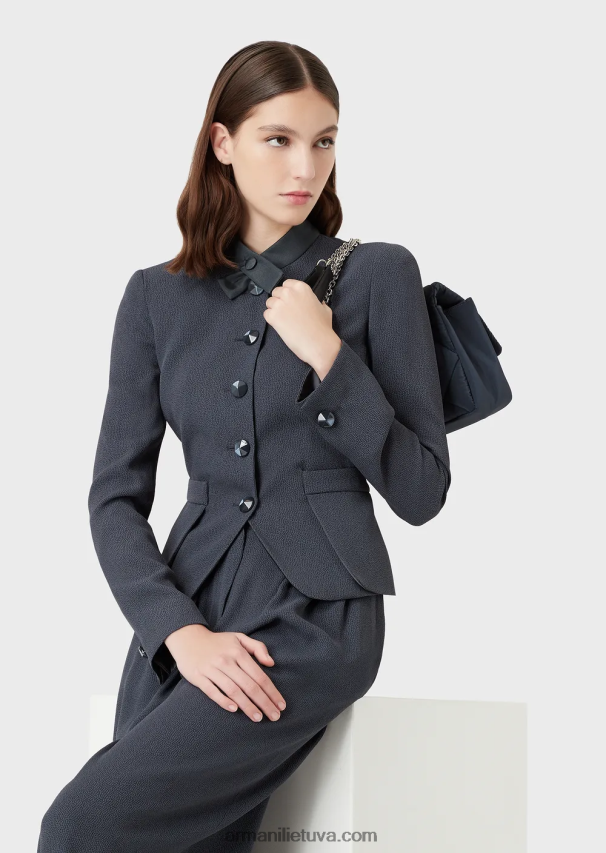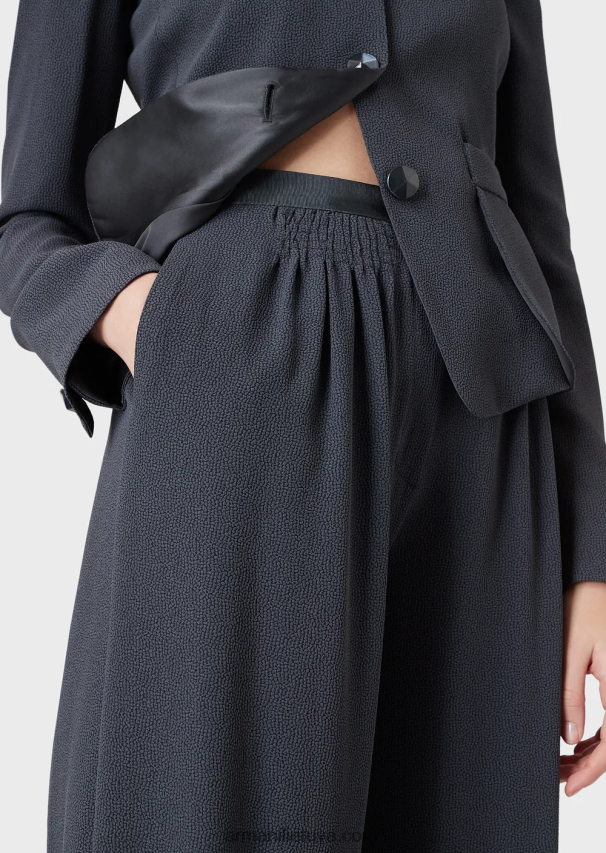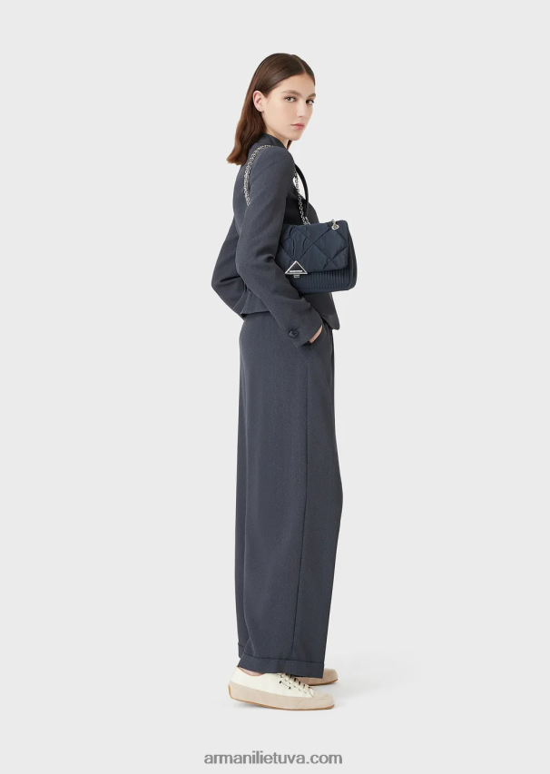 elementai iš ikonų projekto atspindi emporio armani esmę. ši klasikinė, visžalių kapsulių kolekcija suteikia šiuolaikišką prekės ženklo DNR interpretaciją, atnaujindama ikoniškas praeities formas ir tūrius. Lengvai platėjantis, plačių kojų pjūvis dengia visą kūną, suteikdamas struktūrą ir rafinuotos elegancijos. moteriškos kelnės su raižytomis detalėmis ir smiginiu juosmeniu, apipjaustytu osmanų audiniu. jie pagaminti iš išskirtinio audinio, kurio apdaila primena ryklio odos tekstūrą. visiškas gryno, rafinuoto armani stiliaus įsikūnijimas.