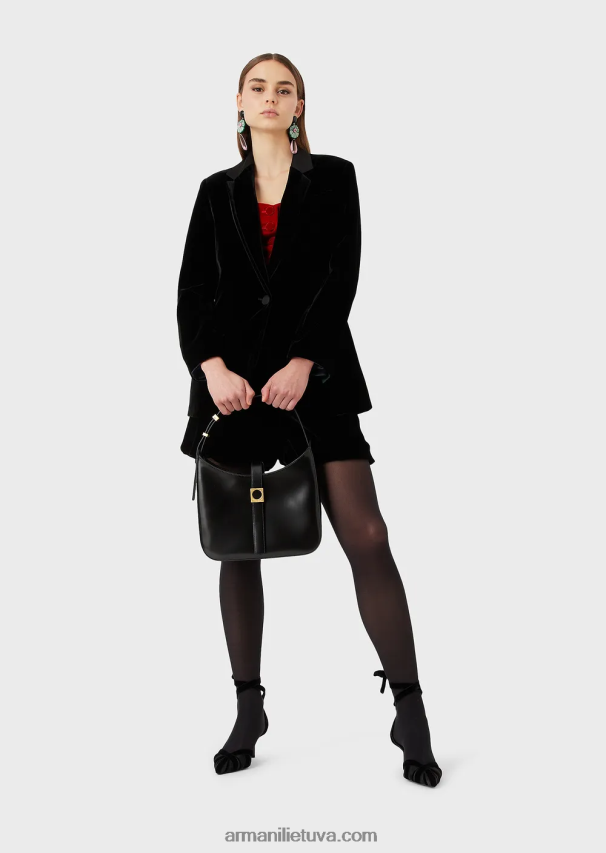 moterys juodas Armani šlifuotos odos valkatų krepšys 02482X744