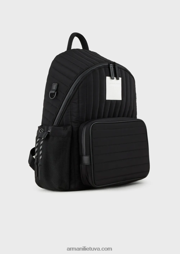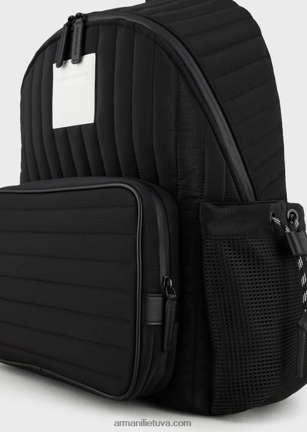vyrų juodas Armani perdirbta dygsniuota ripstop nailono kuprinė 02482X1945