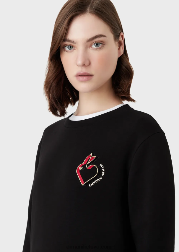 moterys juodas Armani dvigubi megztiniai su siuvinėjimais 02482X411