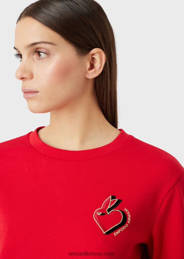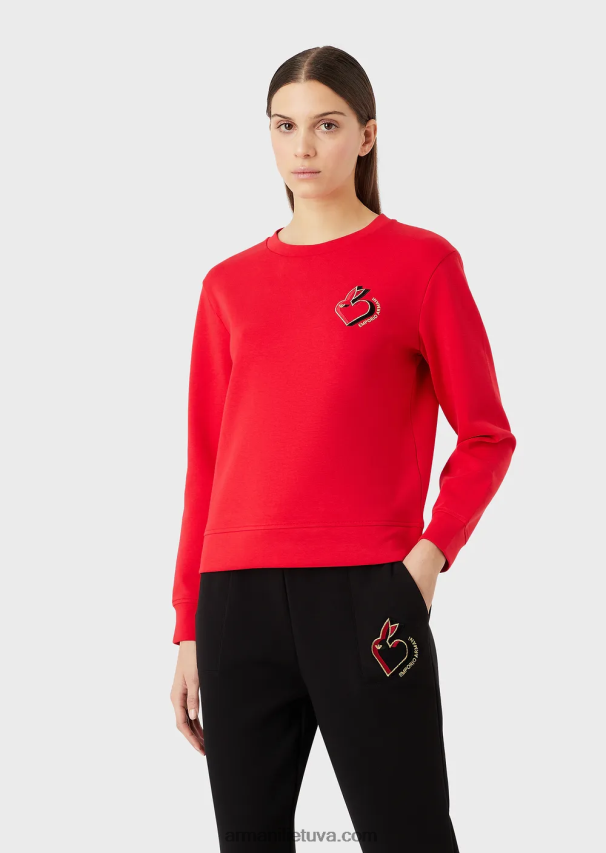 moterys raudona Armani dvigubi megztiniai su siuvinėjimais 02482X412