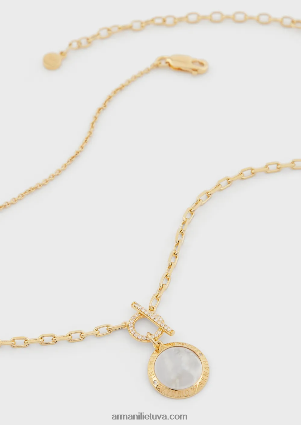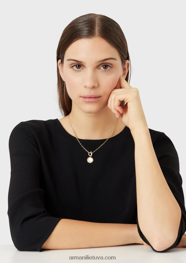 moterys auksas Armani baltas perlamutro kaklo papuošalas 02482X805