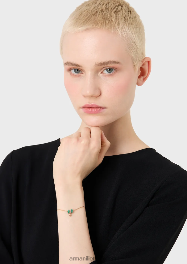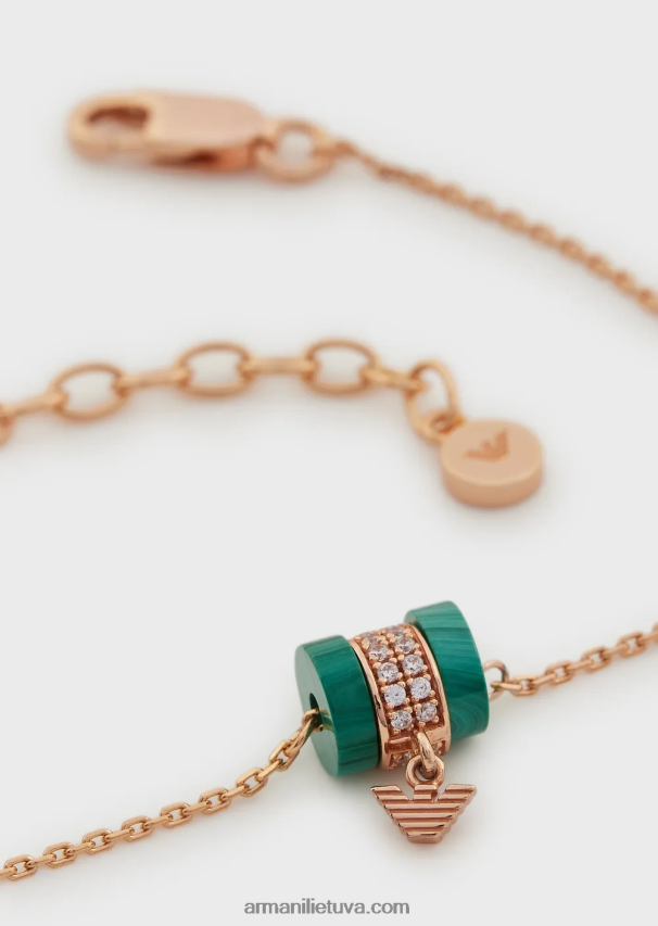 moterys rozinis auksas Armani žalio malachito komponentų apyrankė 02482X833