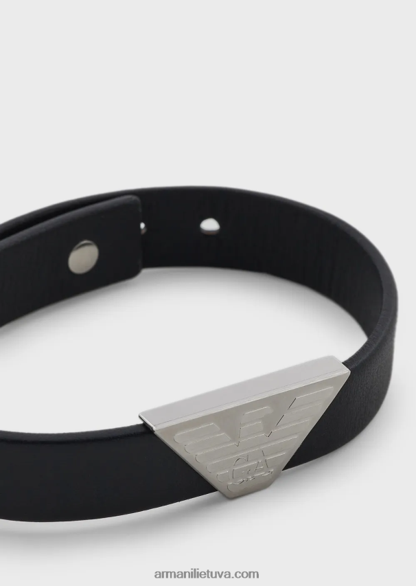 vyrų sidabras Armani juoda odinė id apyrankė 02482X2103