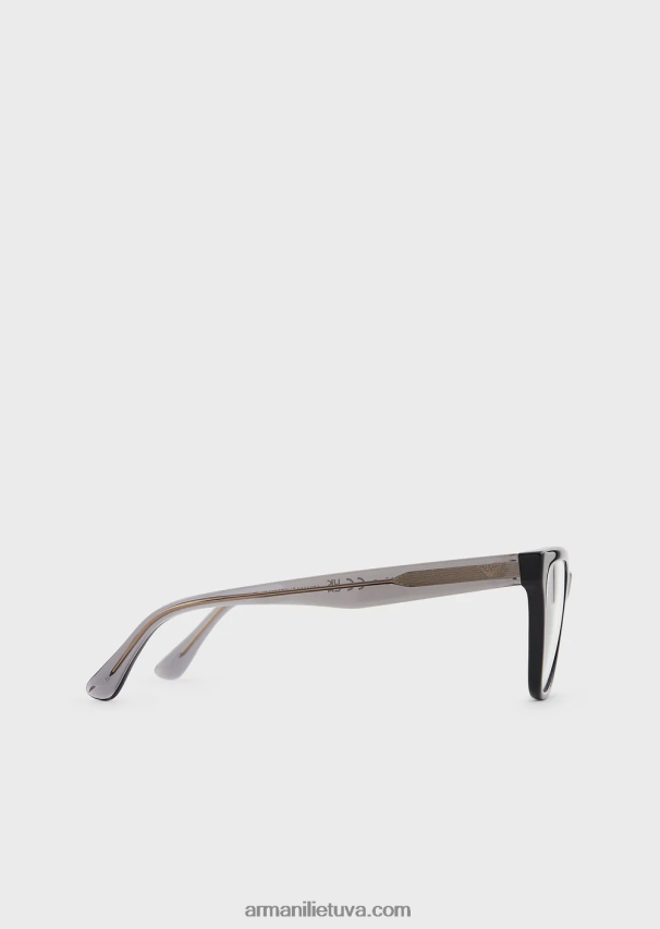 Moteriškas stilius su ekologiškais, bioacetato rėmeliais su nepakartojamu katės akių dizainu. šventyklos su metaliniu išgraviruotu rėmu ir armani tvarumo projekto logotipu viduje.