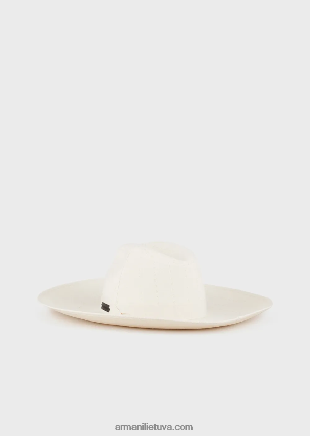 vyrų baltas Armani linu dengta fedora kepurė 02482X2057