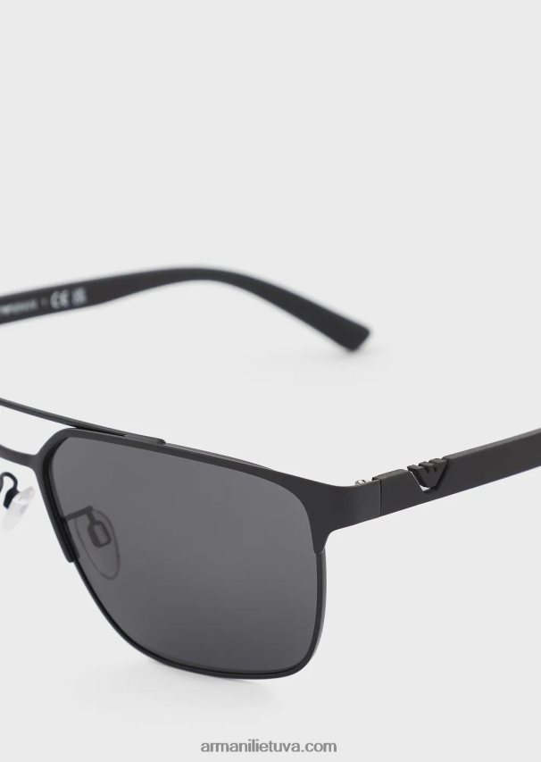 Moderni vyriški akiniai ant kvadratinės konstrukcijos iš metalo ir gumos. su dvigubu tilteliu ir metalinėmis nosies pagalvėlėmis, užtikrinančiomis didesnį komfortą. įspaustas erelio logotipas ant šventyklos.