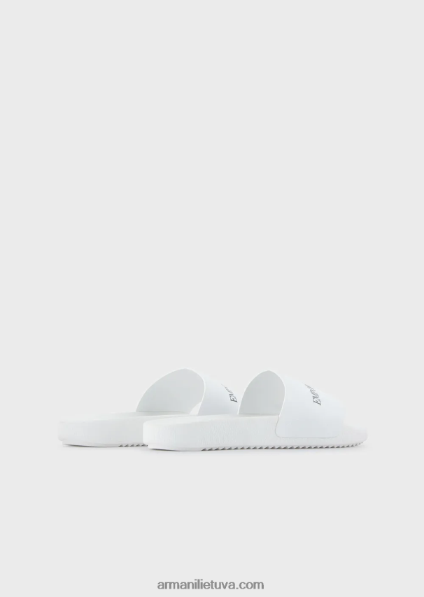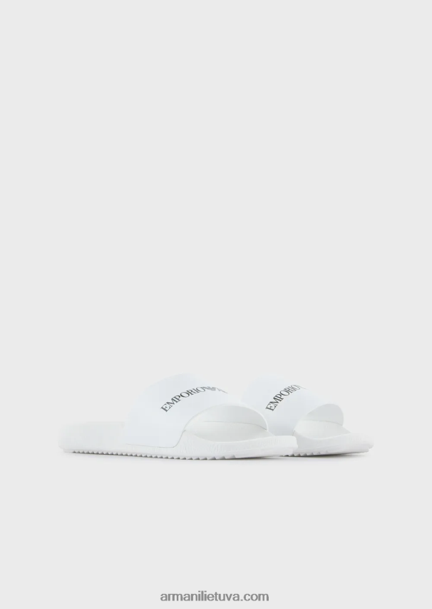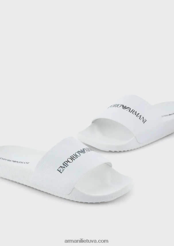 vyrų baltas Armani kalami odiniai slankikliai su logotipu 02482X1007